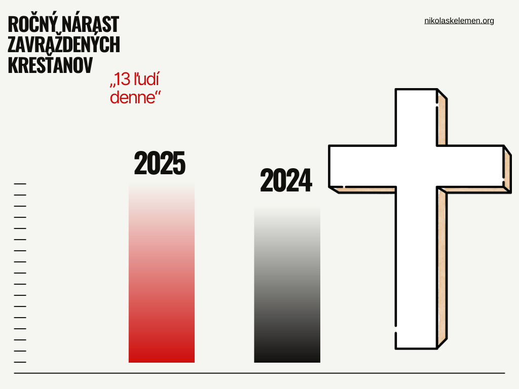 Po predchádzajúcom poklese sa počet zavraždených kresťanov opäť zvýšil. Z 4 476 v roku 2024 vzrástol na 4 849 v roku 2025, čo znamená, že po celom svete je denne zabitých v priemere 13 ľudí pre ich kresťanskú vieru